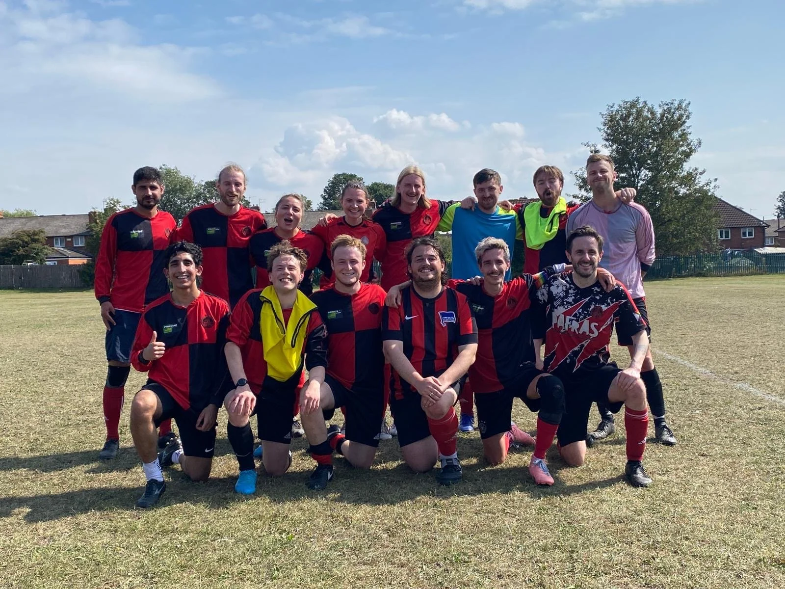 Republica Mixed play in the Leeds Community Football League (LCFL). The team is a space where all genders can play together, allowing members of our large and diverse club to play 11-a-side football together for the first time.